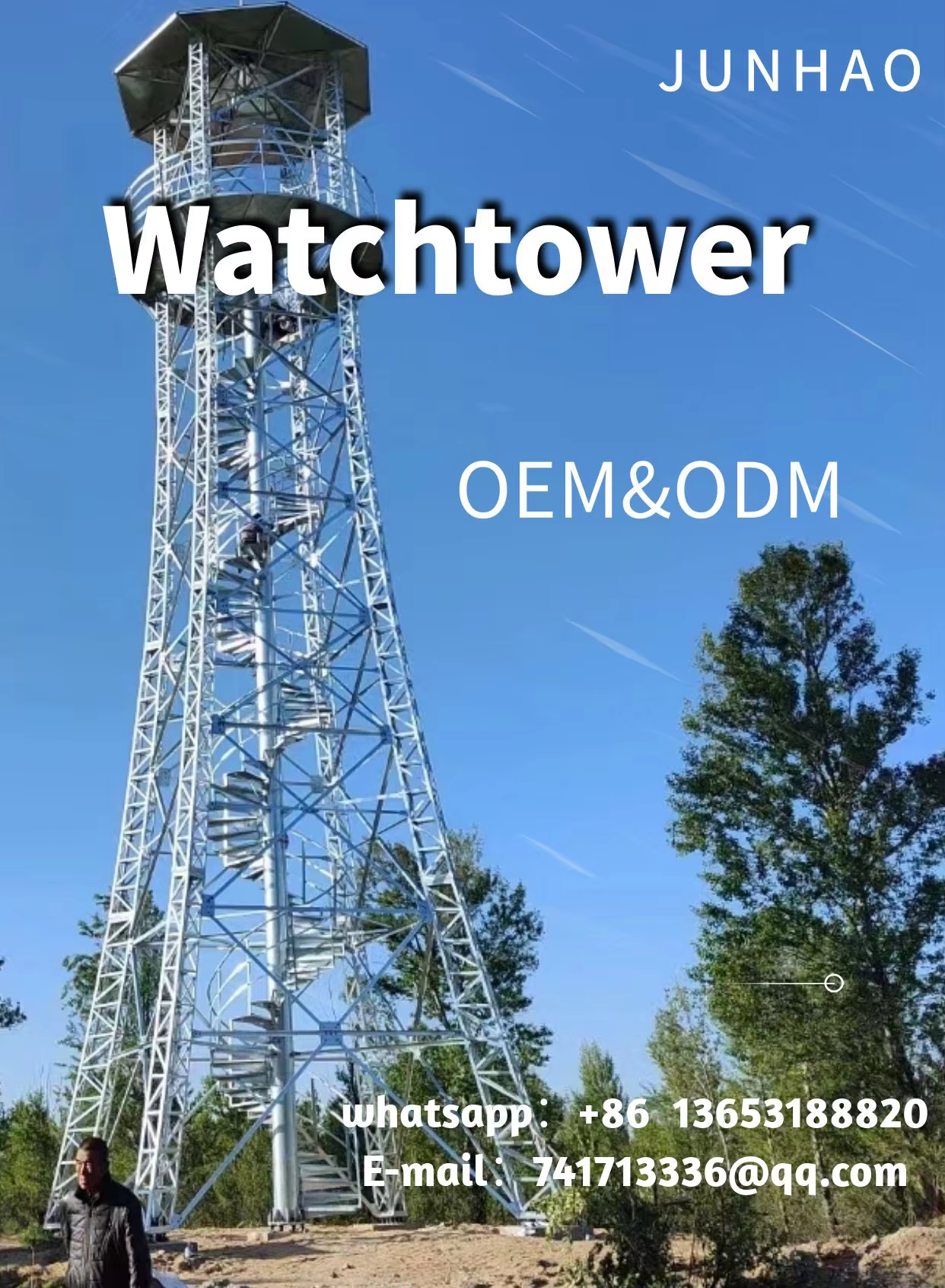 森林观测塔或森林火灾监测塔由塔身、平台、塔、梯子、简易房间和防雷系统组成。瞭望塔的结构一般为钢结构塔,易于拆装。平面为四边形独立或拉丝。主曲线一般为折线,内部结构为十字。上部设有工作平台或值班室。里面有斜梯或旋转梯。我们公司生产的瞭望塔,结构合理,外观美观,产品耐用。 森林瞭望台是森林防火、宣传和安排防火任务、组织防火工作、有效保护自然、紧急情况下指挥消防、林业部门消防的灵活工具。铁塔钢结构监测系统。设备结构合理,外观美观,产品耐用。铝合金监测塔无需外部维护,可安全使用30年。 |
